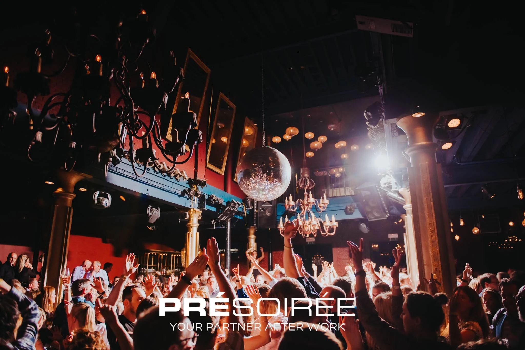Zo’n 800 gasten kunnen hier samen uitbundig feesten, zorgeloos dansen op uiteenlopende muziekstijlen en elkaar ontmoeten in verschillende cachetvolle zalen.